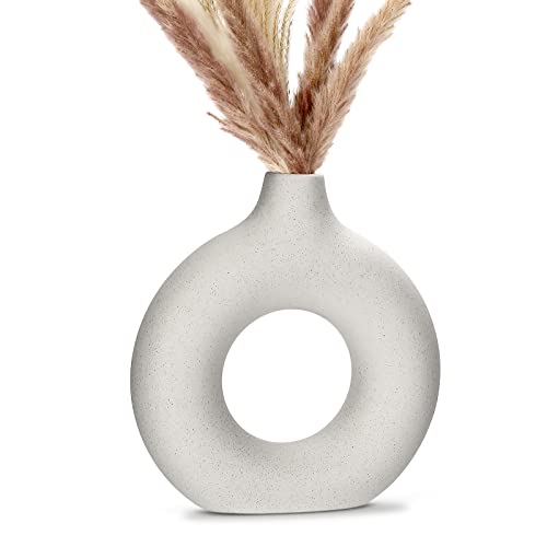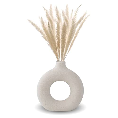Vase Decoratif en Ceramique, Beige Mat, Fleurs Séchées Fait...