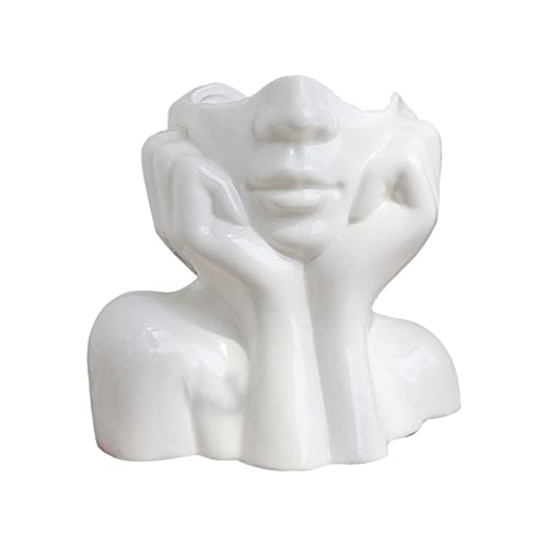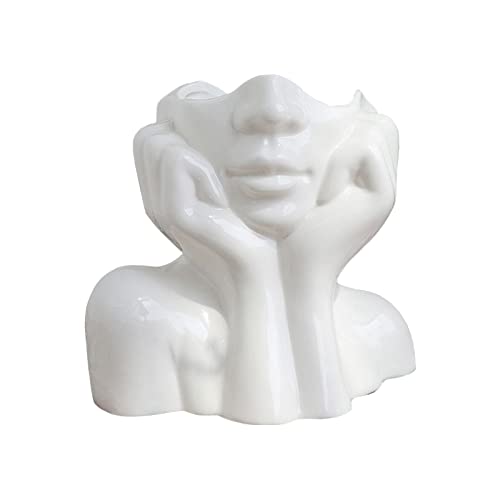CDIYTOOL Vase visage en céramique, vase à fleurs blanc pour...