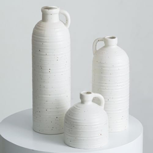 Lot de 3 Petits Vases en Ceramique Blanc, Vases Strie Decora...