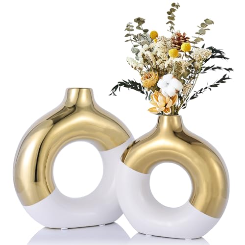 Vase rond blanc et doré avec trou, vases dorés en céramique...
