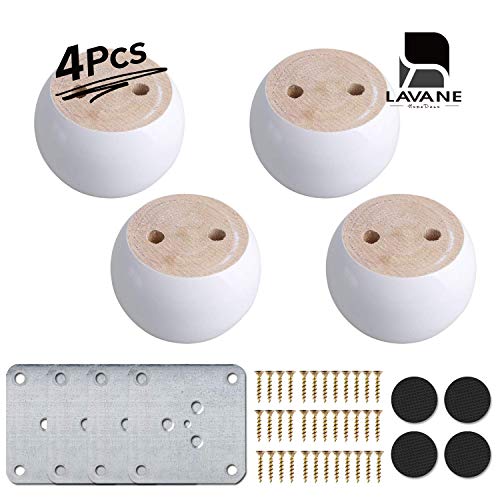 La Vane Lot de 4 pieds de meubles ronds en bois blanc de 5 c...