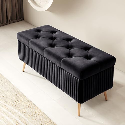 Banc ottoman de rangement en velours avec base dorée – Banc...