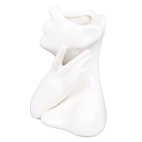 fanquare Vase avec Visage Blanc Brillant 14cm, Vase Moderne...