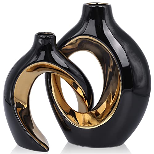 Sawoake Lot de 3 vases en céramique Noir - Petits vases à Fl...