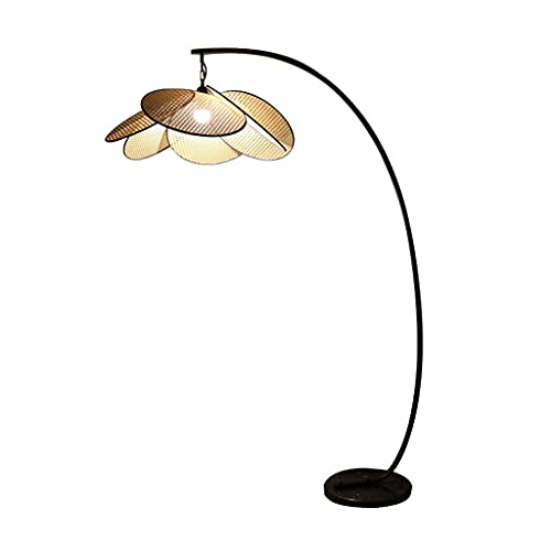 Lampadaire métallique rotin et base en marbre, 2 pieds noirs...