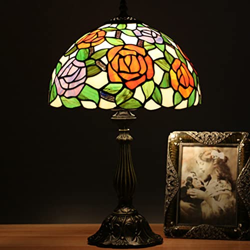 AIBOTY Rose, Lampe en vitrail, Base en alliage