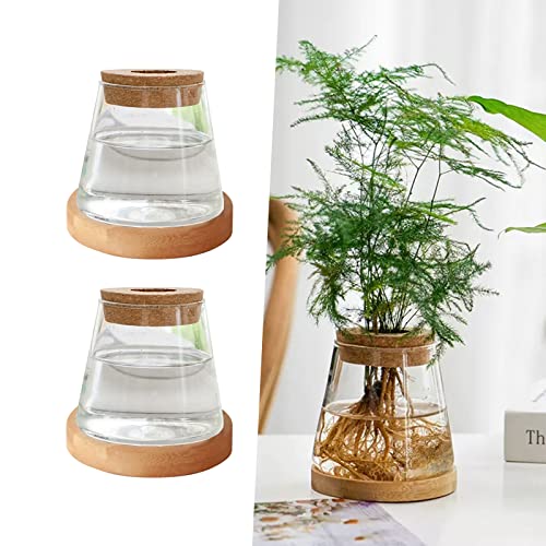 Lot de 2 Vases Hydroponiques avec Bouchon en Liège, Mini Sta...