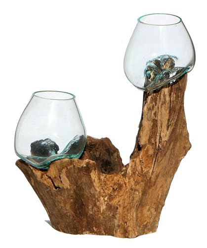 Wogeka - Double vase en verre sur racine en bois Gamal - Sty...