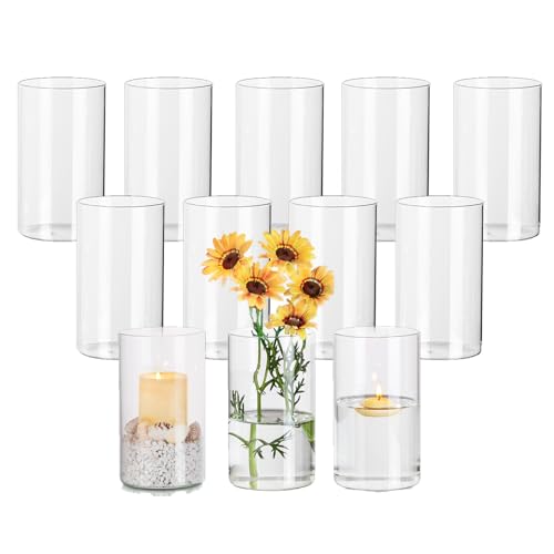 Hewory Set de 12 Vases Cylindriques en Verre, Vase en Verre...