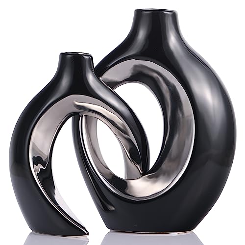 Oliruim Lot 2 Vases Décoratifs Noirs Argentés Modernes