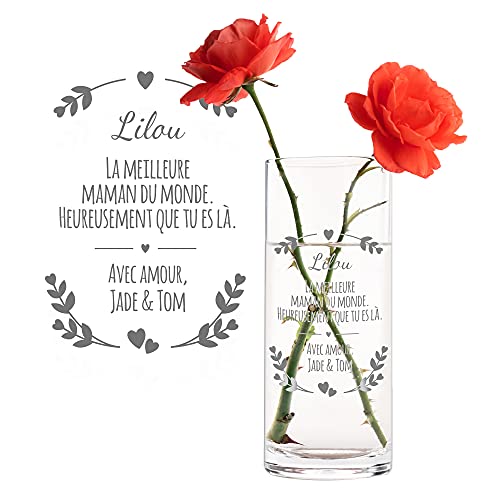 Grand vase en verre gravé minutieusement pour votre maman ad...