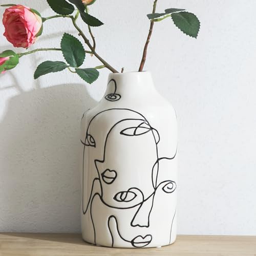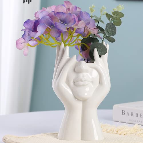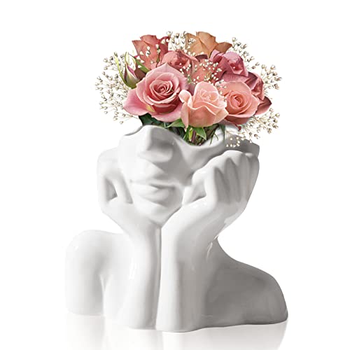 Face en Céramique Vase, Vase Ceramique, Blanc Statue Fleur V...