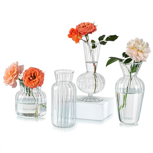 Hewory Mini Vase Transparent Decoratif Ensemble de 4 Pièces,...