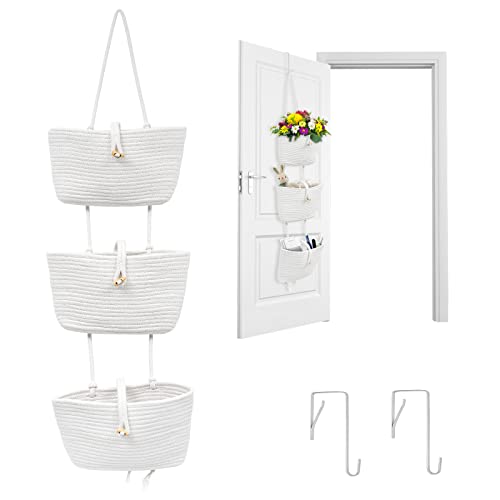 ⭐ Paniers de rangement suspendus en corde tissée sur la por...
