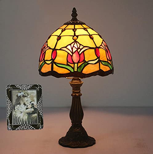 CAZARU Vitrail Tulipe Jaune Abat-Jour Lampe de Bureau Décora...
