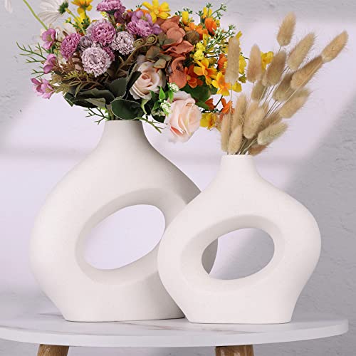 Vase Céramique Blanche Ensemble de 2 Vases Herbe de Pampa Do...