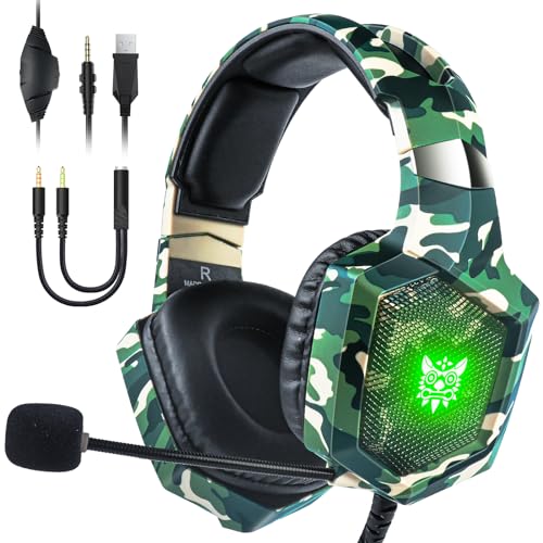 Casque PS4 Vert Camouflage Supra-Auriculaire LED RVB 3,5 mm