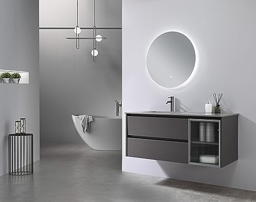 Meuble de salle de bain suspendu strié liseré doré avec vasq...