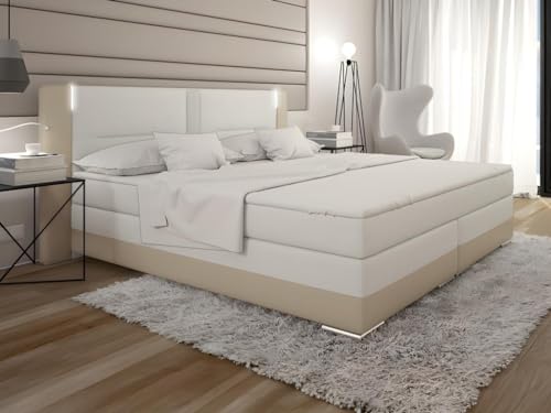 Ensemble boxspring ASTI 160x200 simili crème et blanc - tête...