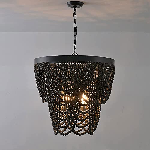 Luminaire Bohème BUniq suspendu perles bois 3 lumières