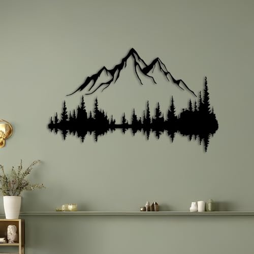 Grande sculpture murale en métal - Motif montagne et forêt -...