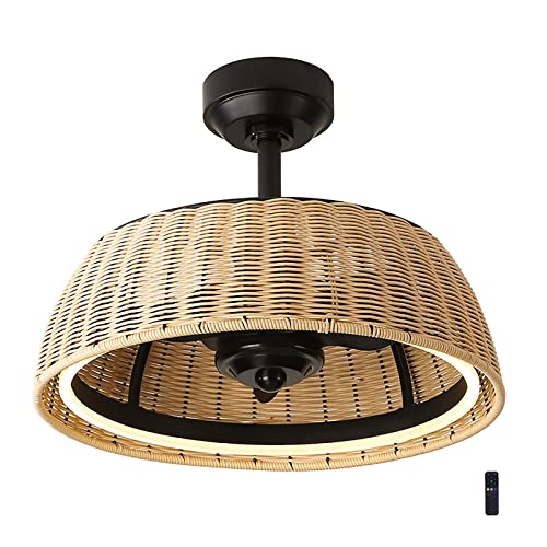 HSPLÉTIX Ventilateur de plafond rotin LED avec gradation, mo...