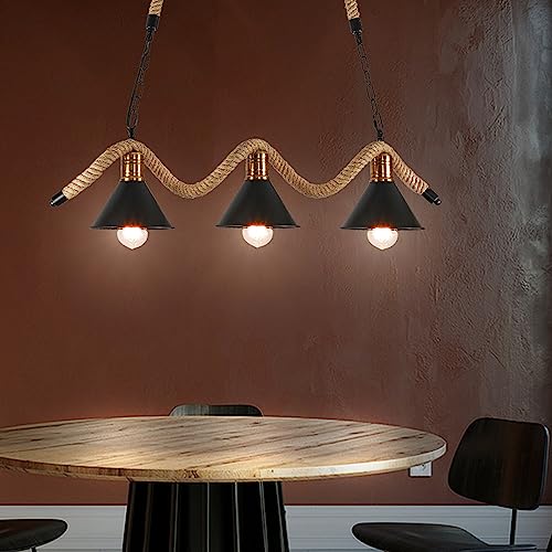 Suspension Luminaire Chanvre Métal Noir Réglable