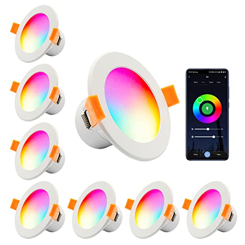 8 Spot encastré LED WiFi RGBW 9W dimmable, downlight 2700K-6...
