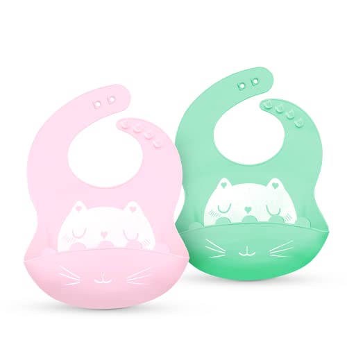 Biboro Bavoirs silicone bébé vert rose, récupérateur sans BP...