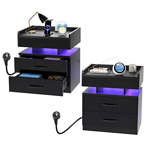Lot de 2 Tables de Chevet LED Réglables, Table de Chevet ave...