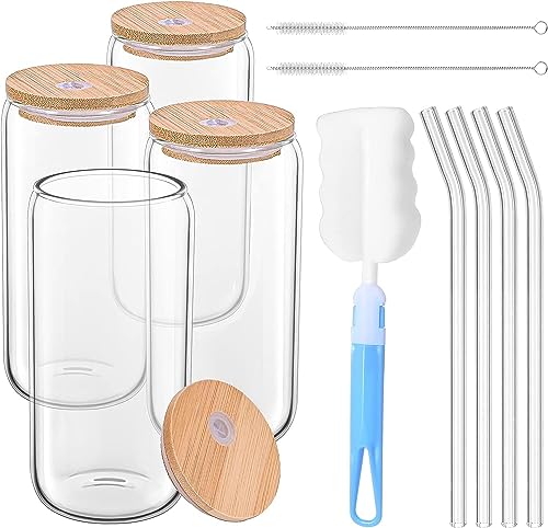 YUTUY Lot de 4 Verres à Cocktail avec Paille en Verre 350ml/...