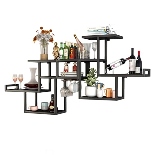 Casier Vin Mural, Étagère Rangement Verres, Porte-bouteille...