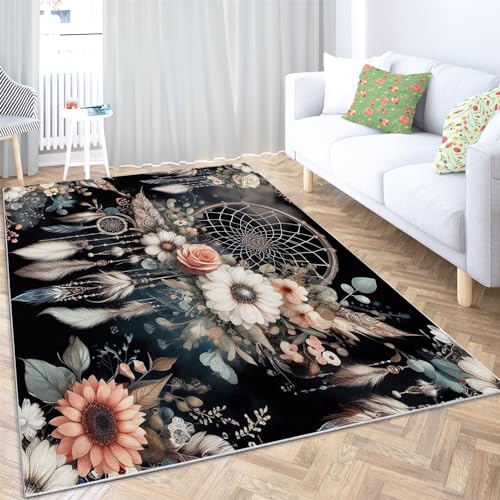 PAJEON Tapis de Décoration Art Géométrique Noir Vert émeraud...