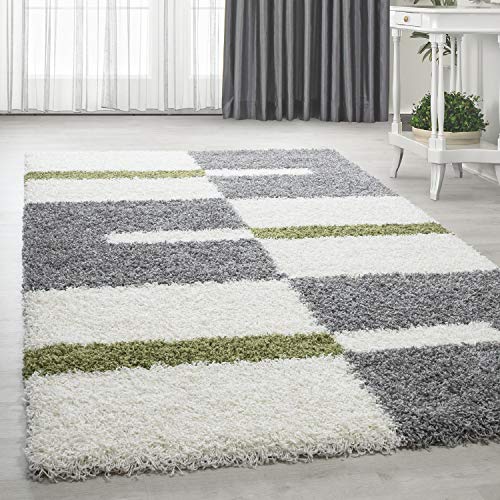 HomebyHome Tapis Salon Vert Moderne 140x200 cm Shaggy Carrea...