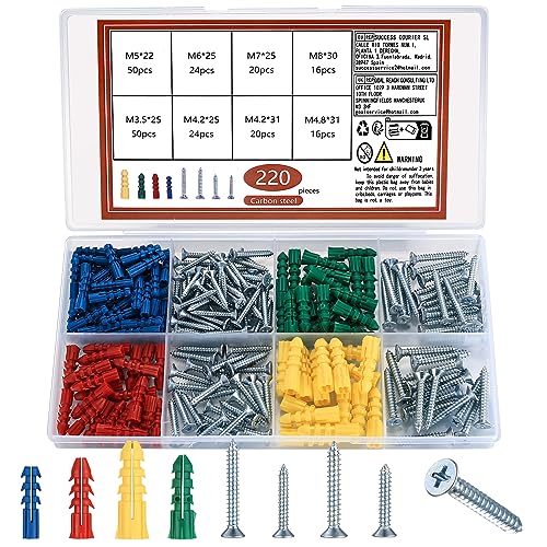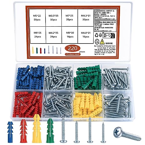 220 Pièces Vis et Chevilles Set, Chevilles Universelles avec...