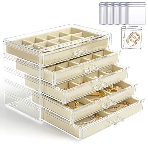 KAMIER Boîte à bijoux en acrylique avec 5 tiroirs, boîte à b...