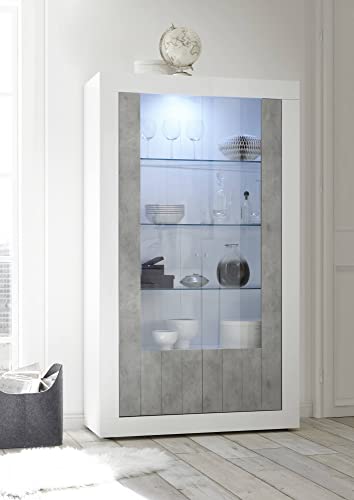 Vitrine moderne Dmora, 80x38h121 cm, Blanc brillant, Ciment