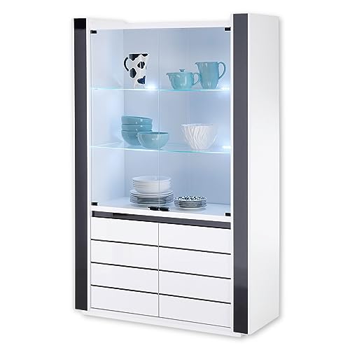 Stella Trading Savona Vitrine en Blanc, Noir - Vitrine Moder...