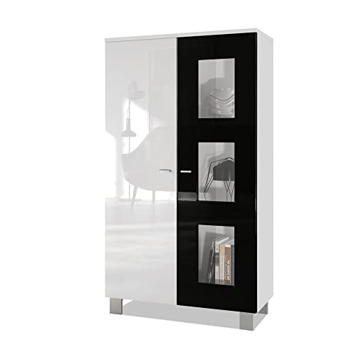 Vladon Vitrine Salon Blanc Haute ou Noir (71 x 129 x 35 cm)