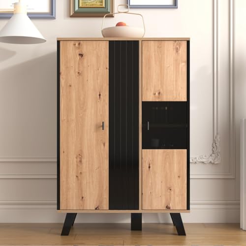 KOMH Buffet noir avec compartiments et vitrine, polyvalent p...