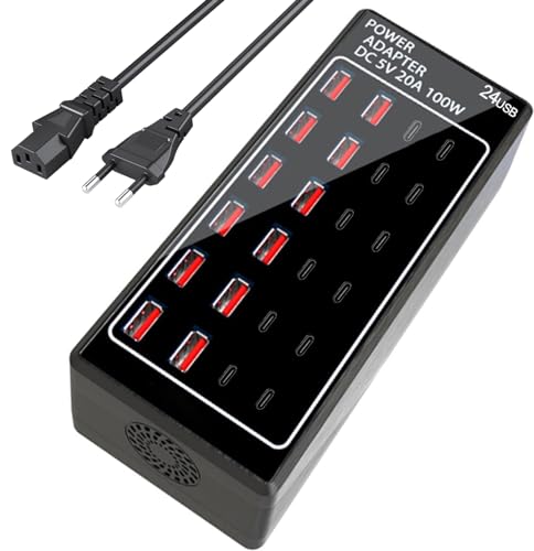 Chargeur USB C Multiple, Station de charge USB 24 ports 100W...